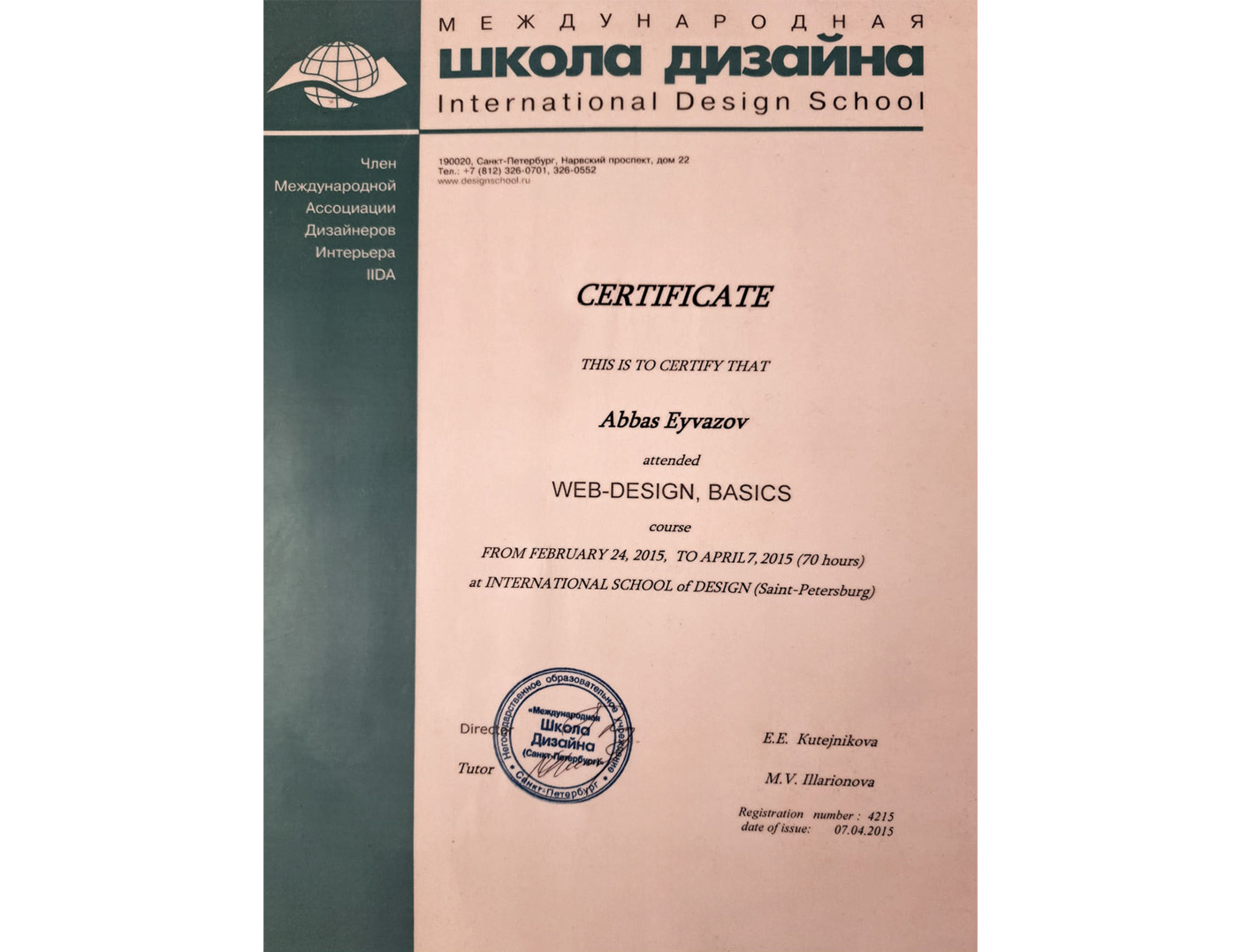 I was born in Baku, Azerbaijan. I graduated with a Master’s degree from the Institute of Arts in 2011. In 2015, I completed a Web Design course at the International School of Design (St. Petersburg, Russia). I have been working as a graphic designer since 2011. I have worked for companies such as Xerox The Document Centre – Print Art, Maxmedia Design Agency, as well as at the Ministry of Ecology of Azerbaijan and the OJSC “Tamiz Shahar”. I am the author of the design concepts for the projects “School Eco-Volunteers”, “Karabakh in Patterns” and “Card to Art”.I speak Turkish, Russian, English and German.I’ve officially earned the Adobe Certified Professional certification.